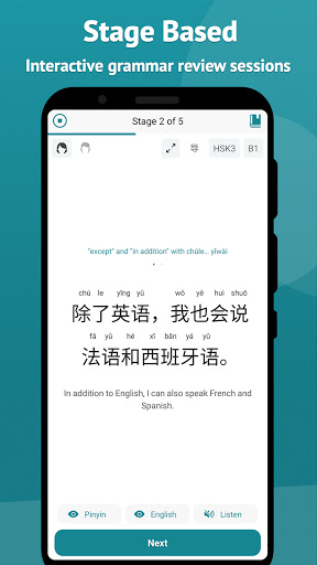 Advance your Chinese Mandarin and achieve new levels of proficiency with stage-based sessions tailored to your Chinese ability. With the flexibility of being able to complete grammar reviews, character studies and tests anytime, anywhere, and directly from your device, it has never been easier to learn Chinese on the go.
