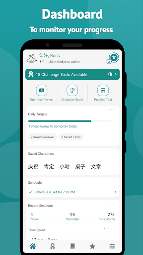 • Schedule a time of day and be notified to complete a study session. Keep Mandarin fresh in your memory and never miss a session.