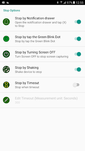 Ways to stop the screen recording (in stop options)
