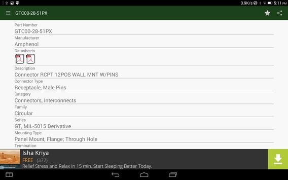 This application provides access to the electronic components database. You can search by part number, view detailed information about electronic components, and download datasheets.