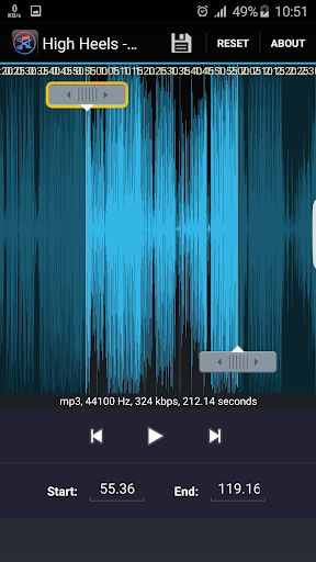 ♪ Manually set the Start & End time(in seconds) by typing the values in text boxes at bottom of app.