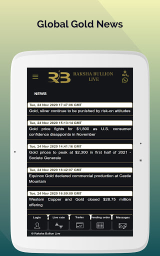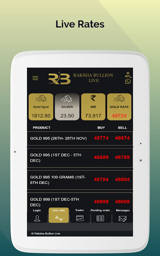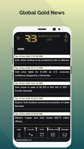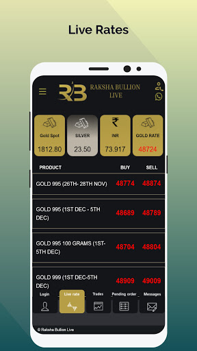 Raksha Bullion (RB) is a leading company in India which deals in bullion, specializing in bars and coins of various precious metals like Gold and Silver. With over 2 decades of experience in Gold trading, and a national network of investors, Raksha Bullion now makes its forey into online spot trading through Raksha Bullion Live Mobile App with many features and dedicated services to its clients.