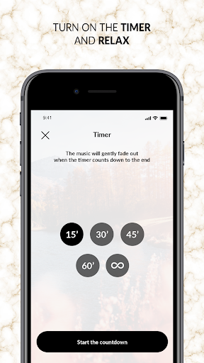 The application is equipped with a special timer that you can use during your meditation, training, rest or relaxation. The timer will end its work at the time you choose.