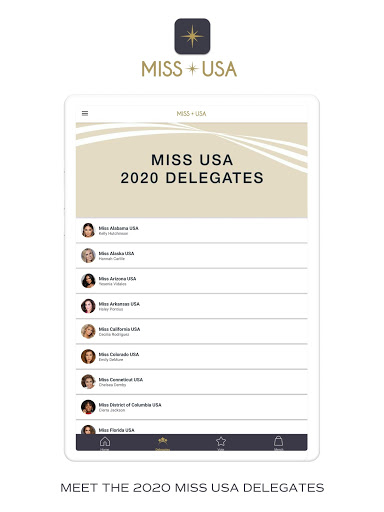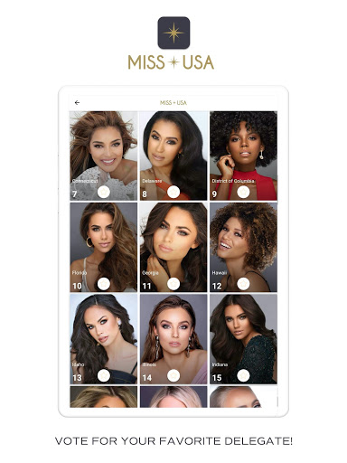 Download the official MISS USA app and vote to bring your favorite 2020 MISS USA delegate to join the Top 16. Read delegate bios, view exclusive content and learn more about this year’s competition. Voting for MISS TEEN USA included in app.