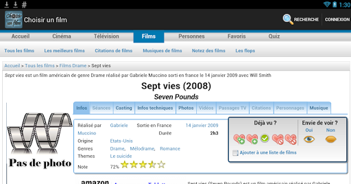 Une fonction "code barre" vous permet de scanner le code barre d'un DVD ou Bluray pour aller sur la page du film correspondant sur choisir un film et ainsi pouvoir rapidement gérer votre bibliothèque de films, noter ce film etc.