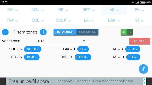 - In the advanced mode you can choose variations of the notes (Major, minor, m7, 9 ....).