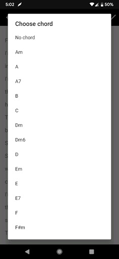 Chords Song Writer is an application that allows you to add chords to your songs!