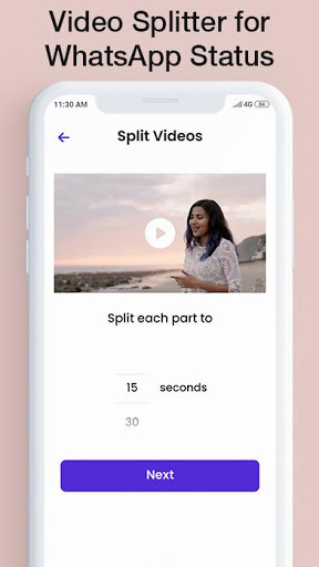 * Video Status Splitter to split up long videos to 15 second parts or 30 second parts to upload it on WhatsApp Status without any quality loss or watermark.