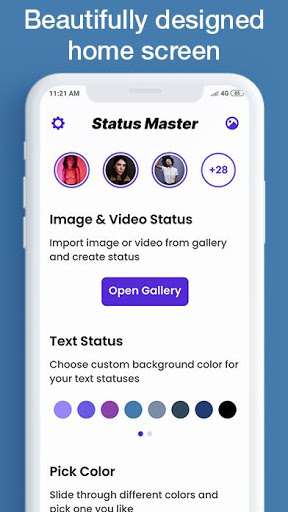 Status Master is a full fledged Photo & Video Status Maker app with all nesscessary tools. Why we call it full fledged?! because right from choosing the background for the status to choosing the time duration for the status, everything is to up to user. User can take full control over what they do and with all provided tools, they can surely make one classy and good looking status with a pinch of creativity in no time.