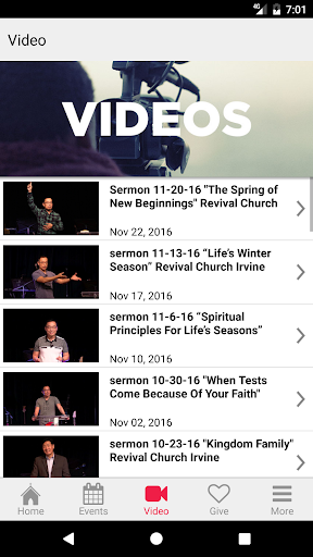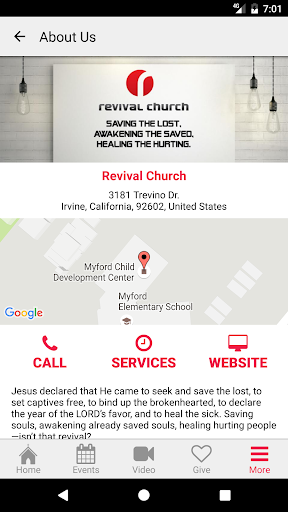 This is Revival Church's official mobile application. With the Revival Church App, you're instantly connected to Pastor Stephen Chong's weekly sermons on video and audio, our current activities and events, multimedia, our calendar, our prayer wall, and much more.
