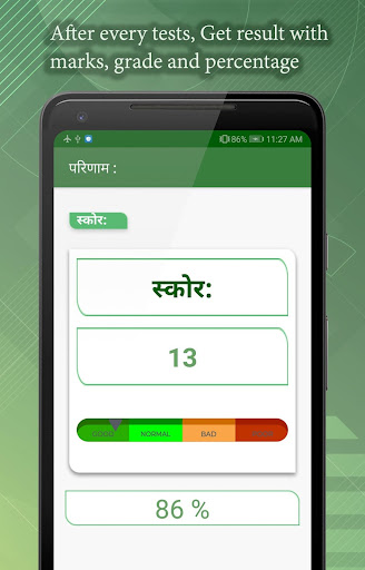 Test Result: Result along with percentage and grade represented at the end of each test.
