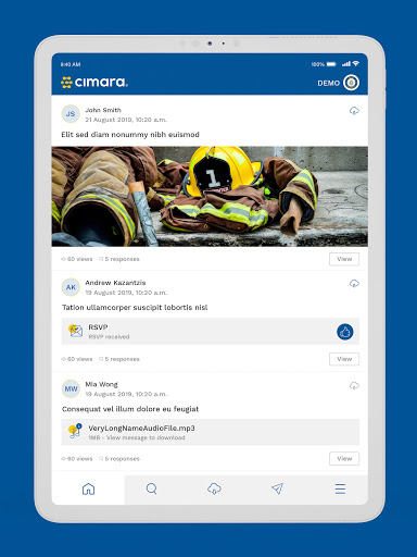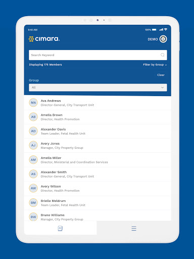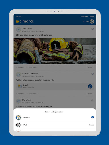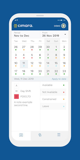 The Cimara mobile and tablet app has been created to help organisations manage and keep in touch with their workforce more effectively. The mobile and tablet app integrates seamlessly with the Cimara admin web application.