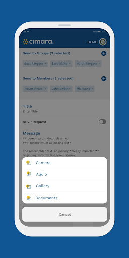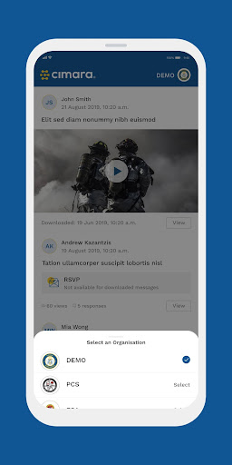 - Notifications from multiple Cimara organisations on a single device;