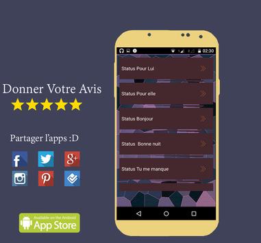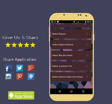 Installez cette application et profiter de notre grande collection des Status et citations à partager WhatsApp, Facebook, Twitter et autres réseaux sociaux.