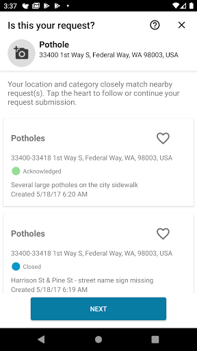 For those potholes, abandoned shopping carts, garbage in the streets or other local non-emergency problems that need attention, the Eyes on Federal Way app makes reporting a problem easier than ever. This app uses GPS to recognize your location and gives you a menu of common quality-of-life options to select from. The app allows you to upload pictures to accompany your request. The mobile app can also be used for a variety of other requests such as street maintenance, street light requests, downed trees, and others. Residents can also track the status of reports they or other members of the community have submitted. Residents can also call departments directly at City Hall for information on any municipal service and to report a problem within the city limits.