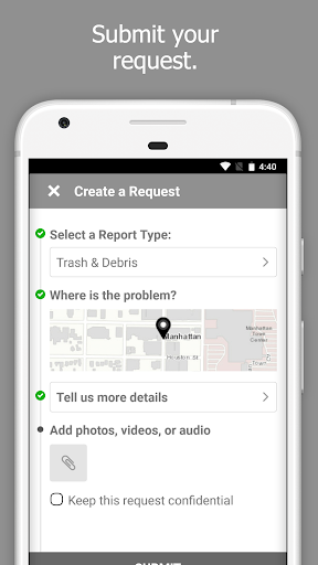 This free app is a convenient way for residents and visitors to report non-emergency issues to the City of Manhattan. In just a few clicks, you can report an issue from anywhere in the city, at any time of day. Simply open a report regarding your issue, take a photo and submit. City staff will address the issue as quickly as possible — and you will be able to track the report through to its completion. Help us make Manhattan a better place!