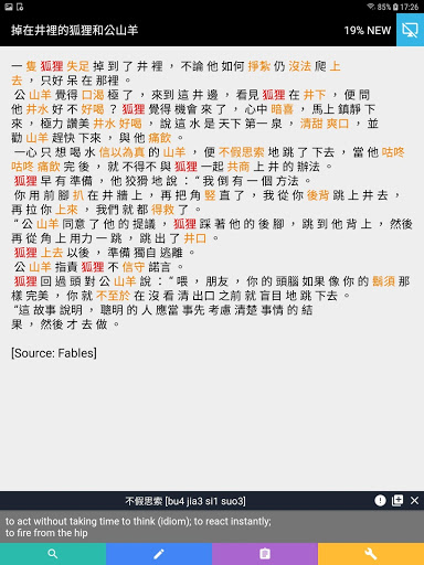 This app provides a reading environment for learners of Chinese as a foreign language.