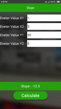 This Calculator takes the co-ordinates of two points on the line as (x1, y1) and (x2, y2) and calculates the slope using this app.