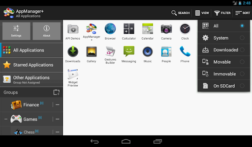 AppManager (App Manager Plus) is an easy-to-use and powerful android application manager. Use AppManager (App Manager Plus), you can quickly organize, share and manage (such search, move, uninstall...) you applications.