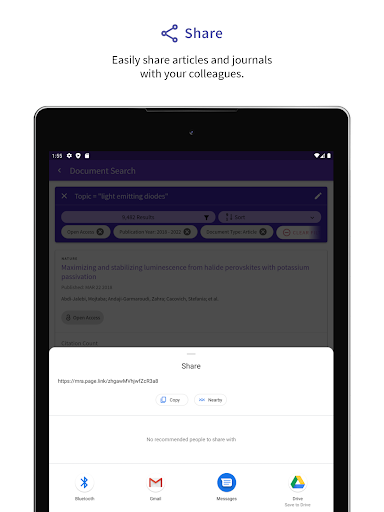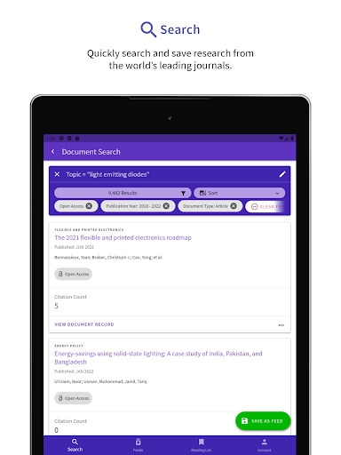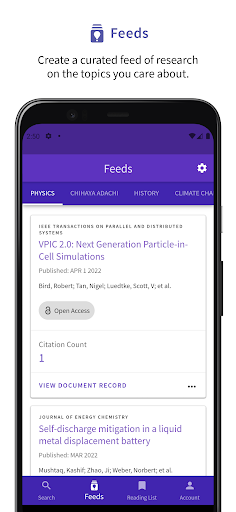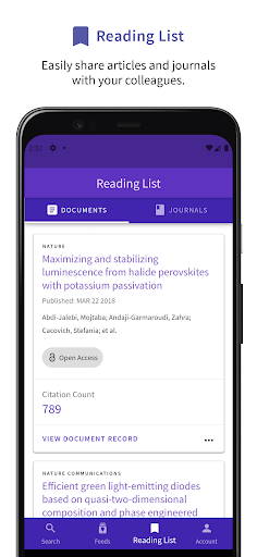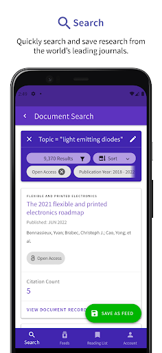 Introducing Web of Science™ My Research Assistant, a mobile app that gives you access to the Web of Science and the Master Journal List wherever you are. Quickly search and save research from the world's leading journals, create a curated feed of the research you care about most, and easily share articles with colleagues – all from your smartphone, wherever inspiration strikes.
