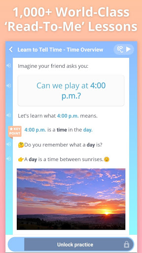 • Auto-play. Sit back and enjoy the whole lesson read to you. Even kids with difficulties decoding text or paying attention can learn advanced concepts on their own.