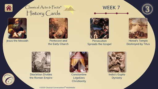 Now integrated with other Classical Conversations resources, each history sentence and science question points you to the corresponding Classical Acts & Facts® card, handy flashcards for classical educators that will expand your memory work in depth and breadth.
