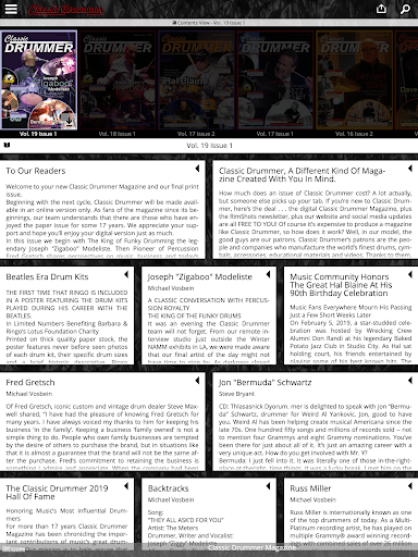 Download the Classic Drummer App for free and subscribe or download individual editions of Classic Drummer -- Including the Classic Drummer Hall of Fame edition.