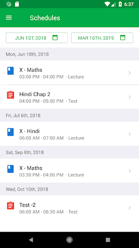 * View schedules for upcoming test and lectures.