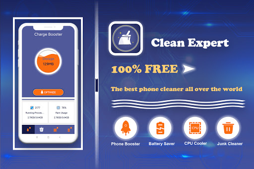 Clean Expert is is a professional cleaning app, including cache cleaner, junk cleaner, storage cleaner, notification cleaner, free up RAM, free up space, CPU cooler, battery saver, game booster, phone booster for Android system, which are all combined in simply one tap in this smart cleaner app.