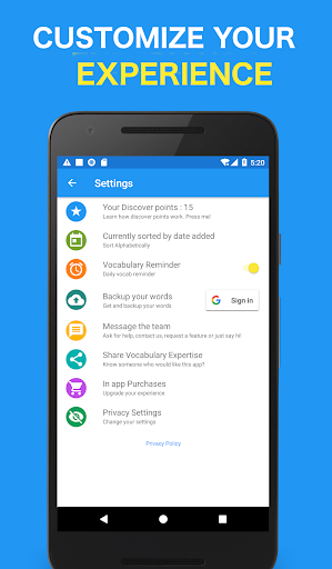 With Define add any word to your dictionary list. Target the vocabulary that is important to you. Don’t waste time learning words that are not relevant. Learn the vocabulary you want by vocabulary building with this free 'vocabulary' practice app. If you are a logophile please send me an email I would love your feedback.