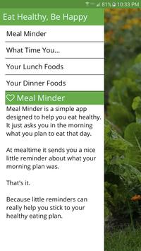 Meal Minder is a simple app designed to help you eat healthy. It just asks you in the morning what you plan to eat that day.