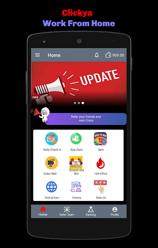 Clickya is the Indian Work From Home Free App which provides Daily Task. You can earn Points by Inviting Friends, watching videos, play spin game, daily Check-in app and Many more.