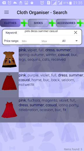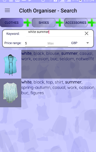 My Cloth Inventory was designed to simplify managing your clothes, especially if your wardrobe is getting bigger and bigger and you find hard to remember what you already have and what not (yet). To mention, My Cloth Inventory can handle not only your clothes but shoes and bags also.