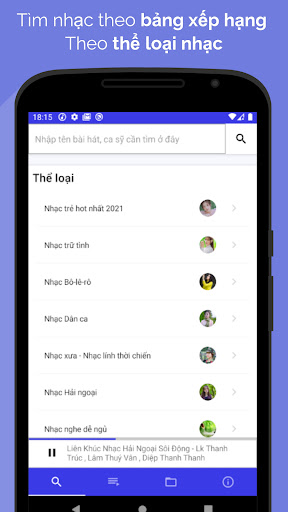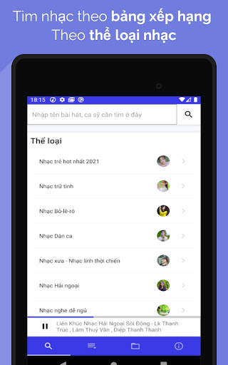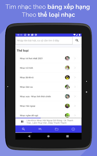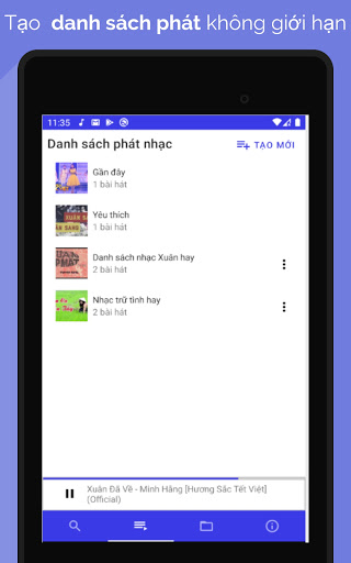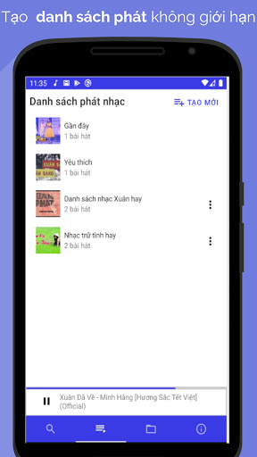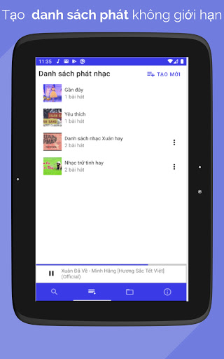 Muziekspeler Luisteraars laten toe om online te luisteren naar MP3-muziek, luister naar muziek van het scherm nog steeds luisteren of luisteren naar MP3-muziek beschikbaar op de geheugenkaart, zoek naar muziek in veel genres van muziek, boeken die spreken zoals populaire muziektoepassingen in Vietnam.