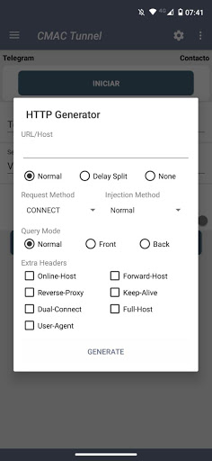 วิธีการเชื่อมต่อที่อนุญาตในปัจจุบันคือ: Direct SSH, SSH + Proxy และ SSH + SSLคุณสามารถเพิ่ม payload ส่วนบุคคลสำหรับตัวคุณเองหรือเราได้เพิ่ม payload เครื่องกำเนิดไฟฟ้าในส่วนของคุณสามารถใช้คำหลัก [วิธี] [HOST_PORT] [SSH] [HOST] [ท่าเรือ] [พิธีสาร] [CRLF] [CR] [IF] [IFCR] [UA] [RANDOM =;] [ROTATE =; ] [แยก] [Delay_split]