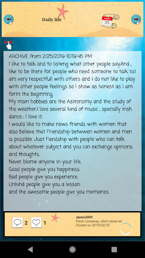 In message in a bottle, you will meet great people and take advantage of anonymous usage to share anything that you want.