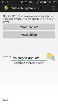 Is your phone full but you want to keep the pictures and videos from telegram? With this app you could save all your media to the SD Card. which gives you much more storage!! this app is still in testing will update it with any good ideas.