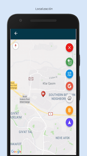 - Visualización de móviles en mapa, vista de calles y vista satelital.
