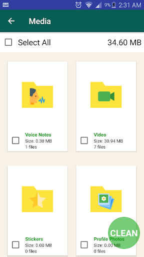 WhatsApp Media Cleaner will help in removing unwanted media files with a single tap! With just one tap all the media files can be deleted.