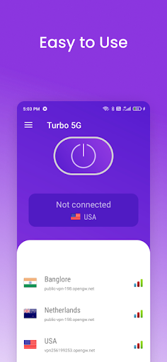 5G TURBO VPN provides the fastest VPN server for you with the smart connection algorithm. All you need to do is just one tap.