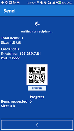 An ip address and port is provided by the device intending to share. The recieving device simply needs those credentials and sharing files will take place. Phone and tablet users can simply scan qr codes provided by the sending device and skip manual entry of credentials. Remember, this app works excellently well with Wi-Fi enabled computers especially laptops. You can share files between your computer and phone sharing the same Wi-Fi (which you can create through hotspot). The following links provide downloads for the desktop app to use on your laptop (or desktop with Wireless access) to share files with your phone or even other computers.