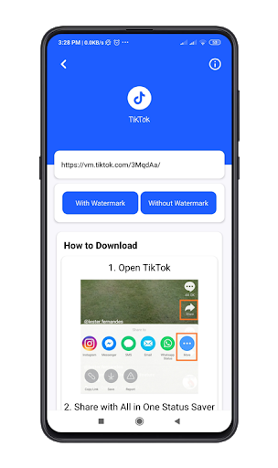 All In One Status Saver is an Android All Social Media Video and Image Downloader App. You can Save Likee, Whatsapp, WA Business, TikTok, Twitter, and Instagram Videos and Images, Reel with All In One Status Saver. You can Download Likee and Tiktok Video Without Watermark. You can easily share them from the App. Interstitial and Banner Ad Support and Many More Features are Available in the App, Download the App and see all the features