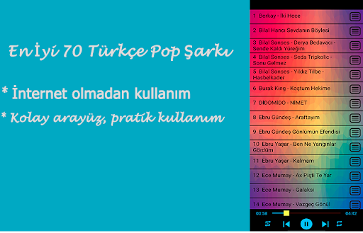 En iyi ve top 70 Türkçe şarkılar internetsiz dinleyebilirsiniz.
