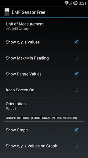 Use the magnetic field sensor on your phone to take EMF readings. Works like a 3 axis EMF meter. Displays EMF in milli Gauss (mG) or micro Tesla (uT). Uses include ghost hunting, paranormal research, finding sources of EMF radiation, monitoring EMF levels, and/or curiosity.