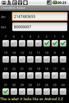 Great for students, electronics engineers and embedded software programmers. No need to make even the slightest mental effort to calculate bits anymore. Simply take out your mobile phone, launch ChordBits-Robot and relax!