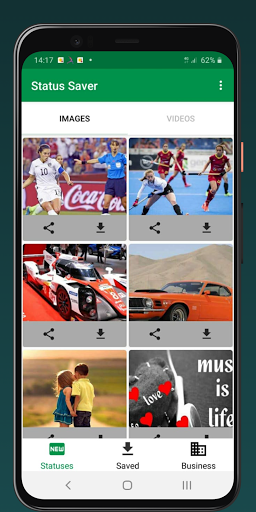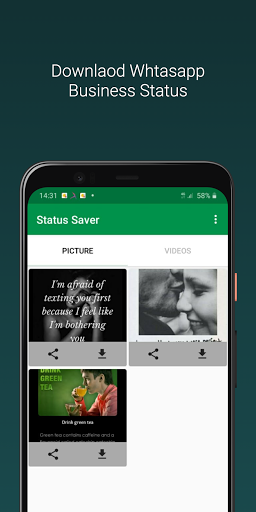 There is an integrateed galery in the app that would allow you to save the status and share it with you friends.