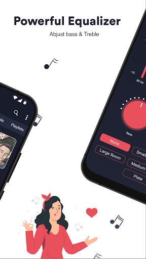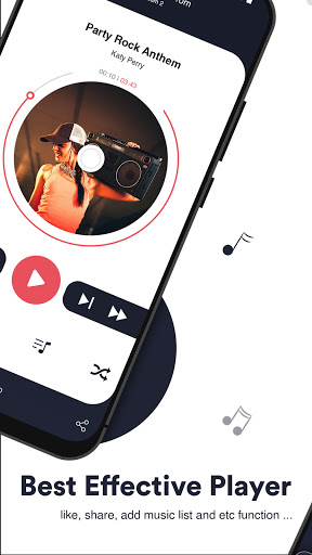 Powerful equalizer, Quick search all music and audio files, Easy to support all music & audio file formats, Custom background skin.