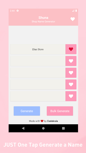 Shuna is an app that helps you to generate shop name. By just pressing generate button this app will generate a shop name. There is a lot of base name in this app so it can produce a lot of name combination.