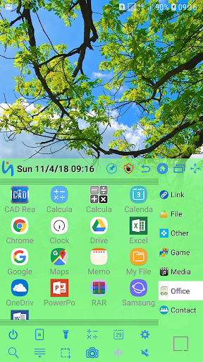 • Sensing a touch down, it expands to a neat and powerful panel, you can release your finger while on any item to launch it