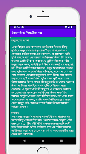 ইসলামিক শিক্ষণীয় গল্প -Islamic Shikkhoniyo Golpo একটি শিক্ষামূলক ইসলামিক বাংলা অ্যাপ যা নবীর জীবনী nobijir jiboni ও জীবন কাহিনী থেকে নেয়া বিভিন্ন গল্প, সাহাবীদের গল্প, হাদিসের গল্প, শিক্ষনীয় গল্প, ইসলামিক গল্প ইত্যাদি দিয়ে সাজানো হয়েছে। নবীদের জীবনী/নবী রাসুলদের কাহিনী, মহানবীর জীবনী (হযরত মুহাম্মদ সাঃ এর জীবনী), সাহাবীদের জীবনী আমাদের জন্য অফুরন্ত শিক্ষার উৎস যা থেকে প্রাপ্ত শিক্ষা আমরা আমাদের জীবনে কাজে লাগাতে পারি। ইসলামিক বই ও ইন্টারনেট থেকে বিভিন্ন ইসলামের ইতিহাস, ইসলামিক গল্প ও কাহিনী সমূহ এবং এ থেকে শিক্ষনীয় গল্প নিয়ে বানানো হয়েছে এই ফ্রি বাংলা অ্যাপ টি যা ইসলামিক গল্পের বই এর মত খুব সহজেই পড়তে ও জানতে পারবেন।